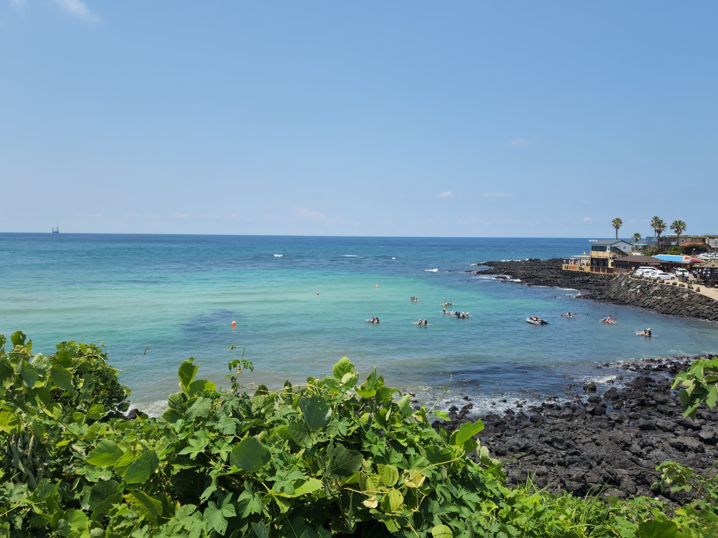 근처 주차장에 차를 댄 곳에서 길을 건너 바다를 향해 몇 걸음 걸어가니 세상 시원하고 아름다운 바다가 확 펼쳐져 있다.